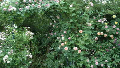 ↑、画像は、一昨年のメインアーチ付近、10種程度のバラを絡ませていた